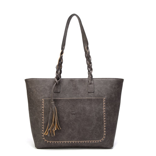The Mathilda Front Pocket Large Tote is presented this season in fashionable new patterns using our signature vegan leather. This model is the ideal size for a day-to-evening companion, worn either over the shoulder or cross-body on its long, sliding strap.